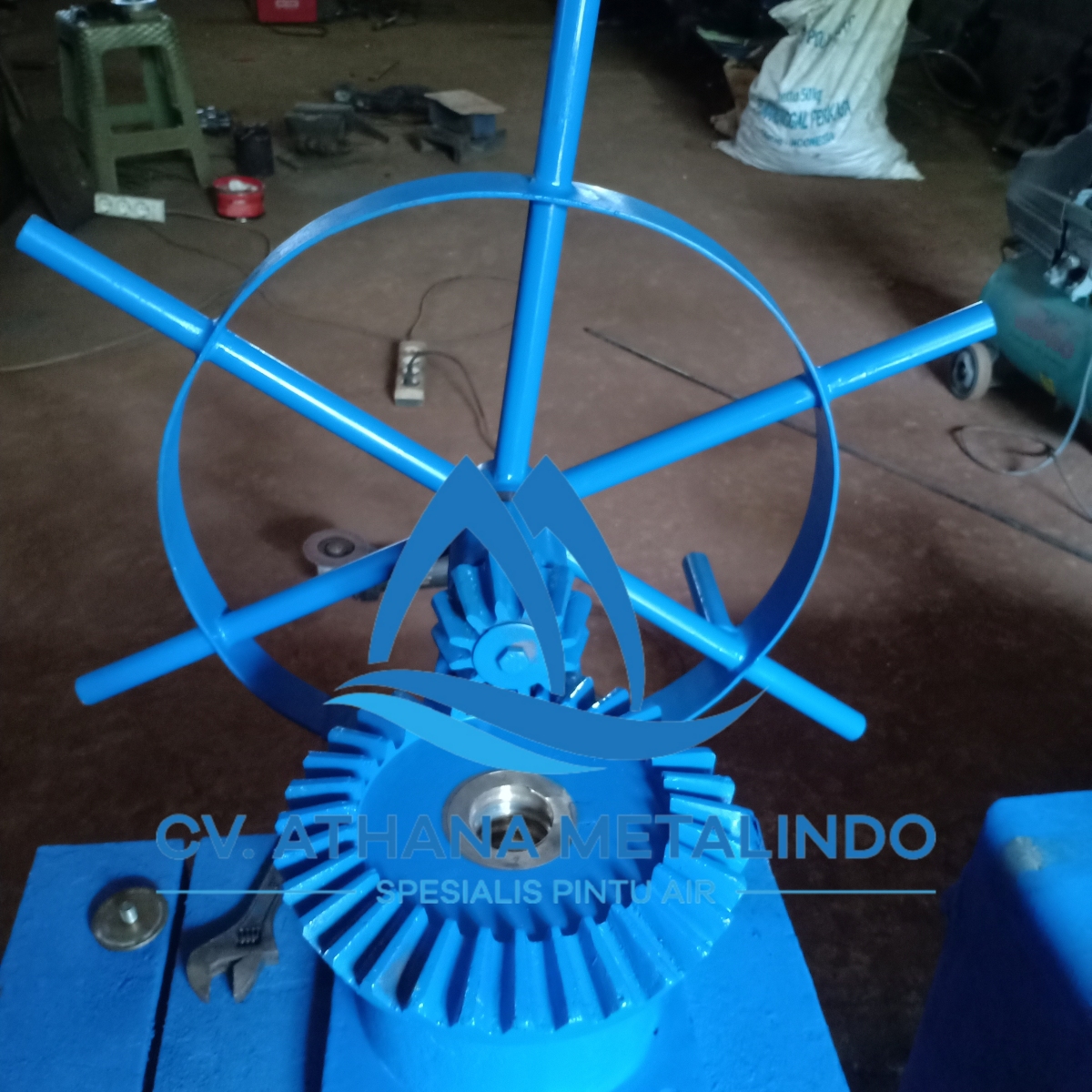 Gearbox Pintu Air merupakan produk pabrikan dari Pintuairku yang memiliki dua roda gigi berukuran kecil untuk tuas pemutar yang diletakkan vertikal dan roda gigi besar untuk menggerakkan stik as drat yang didudukkan secara horizontal.